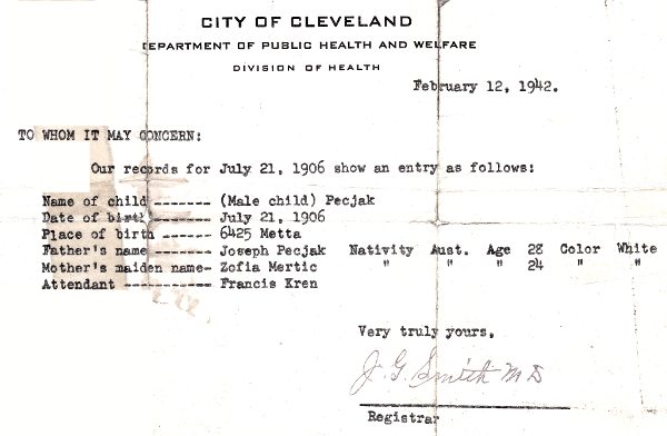 PecjakJosephJr_ProofofBirthJul21_1906