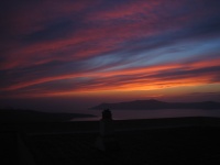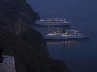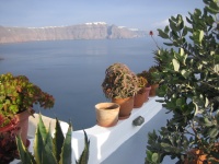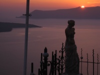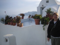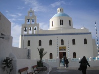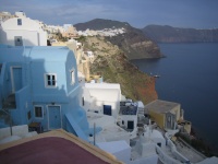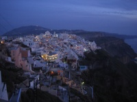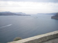 Santorini group of islands, and Thera largest. 12 km wide crater created this island group.