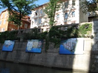 Artwork hanging along the river embankment. Was rather unique.