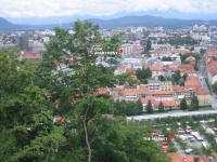 View of the City from the Castle rampart. Looking north to the Alps, about 35 miles away. Our Apartment was called ANA. Lovely, but in a dour building at Pražakova 18, Ljubljana.