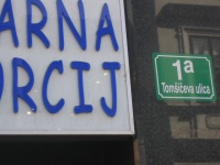 Tomsic Street, near Parliament. Named after great Partisan hero and relative, Tony Tomsic. Pronounced TOME-SHEECH-SEE-VAH U-LEETS-AH. ULICA means street.
