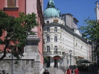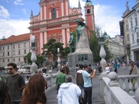 Town Center; called Prezeren Square (after famous poet). Whole of main downtown area about 2000 feet square. This is their famous Triple Bridge.