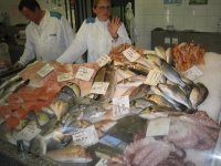 One of about 50 stalls in the fish market. Downstairs in the meat building near the market.