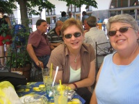 Melinda and friend having a lemonade. Tried to ask the waitress for a lemonada in Slovenian. She said, \"So you want a lemonade, in perfect American English.\" She was about 18.