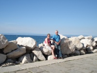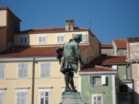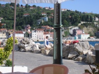 Having a beer in Piran, looking at the local assets. Note bluff in distance. We parked up there...walked down.